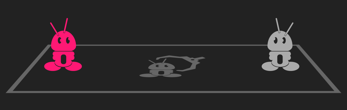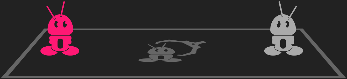 Wie als eerste buiten het veld komt, verliest. Is de strijd onbeslist? Dan wint de robot die het meest